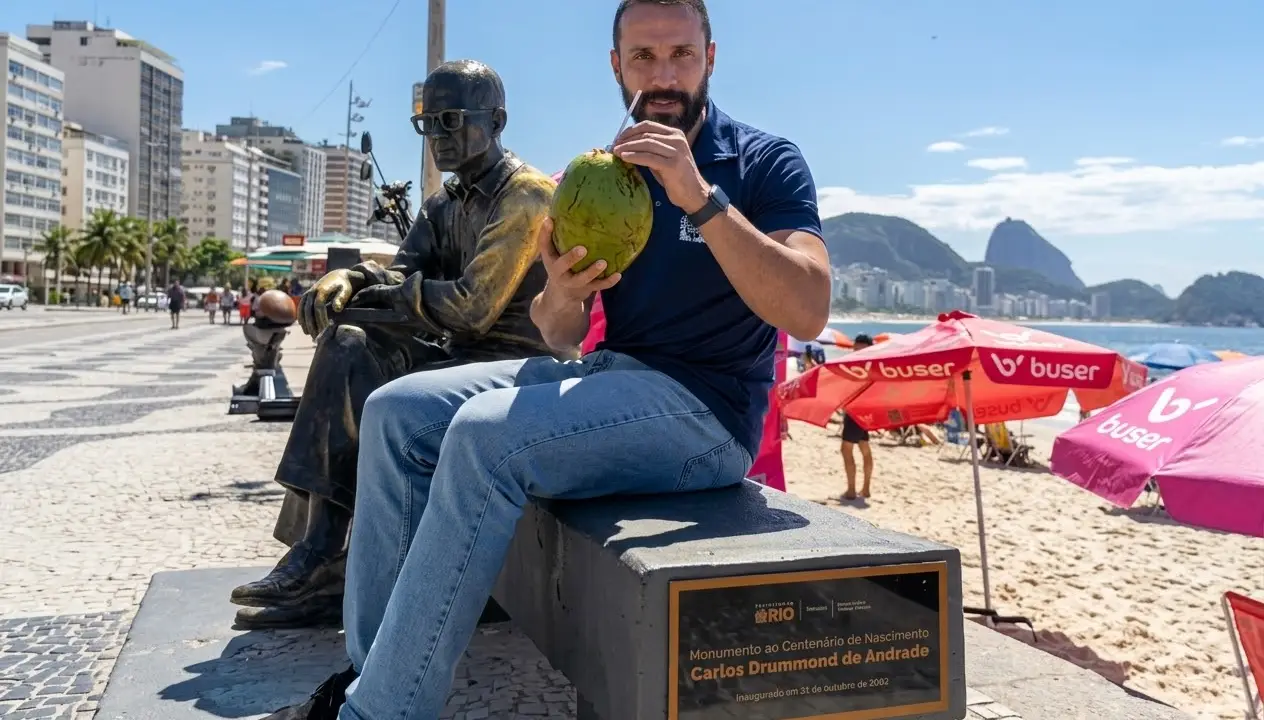 O banco da tradicional estátua de Carlos Drummond de Andrade, em Copacabana, na Zona Sul do Rio, foi totalmente restaurado após ser danificado por um turista que tentou abrir um