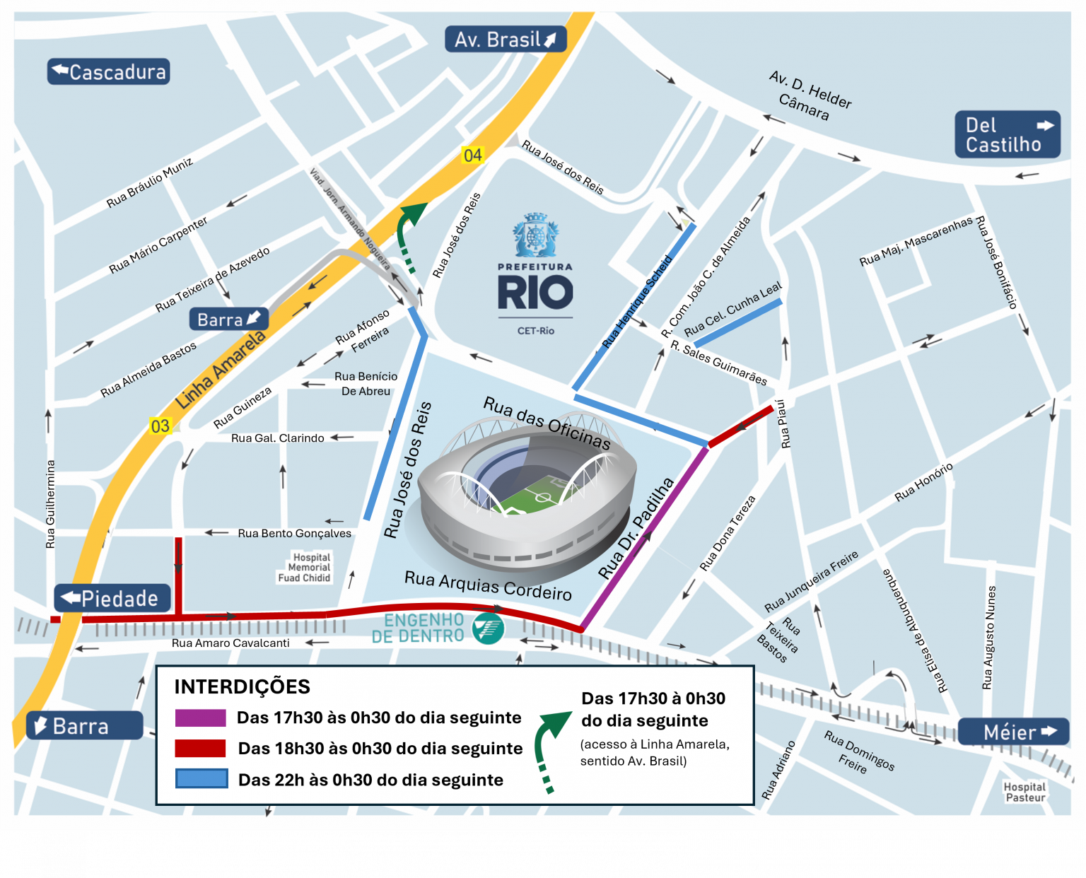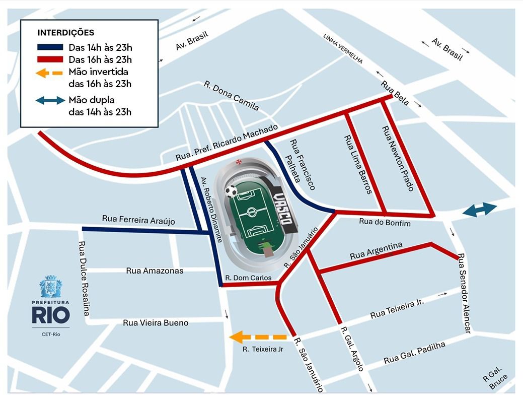 A Companhia de Engenharia de Tráfego do Rio (CET-Rio) implementará um esquema especial de trânsito neste domingo (1º de fevereiro de 2026) devido ao clássico entre Botafogo e