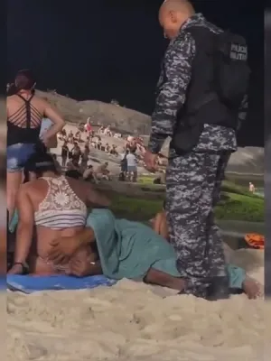 Um casal foi abordado por policiais militares na noite de domingo (18), na praia do Arpoador, na zona sul do Rio de Janeiro, após ser flagrado mantendo um momento íntimo em meio